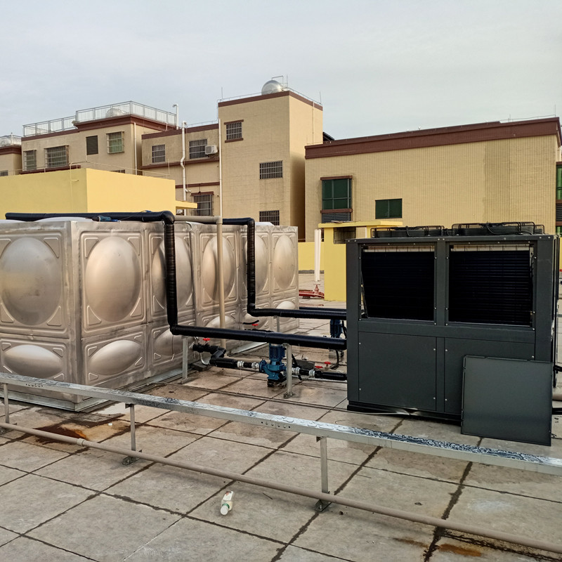 設計方案:在宿舍樓頂安裝2臺XJL-150H空氣能循環(huán)機,配備1個30噸的方形保溫水箱,恒壓恒溫供水,整個系統(tǒng)全自動控制。