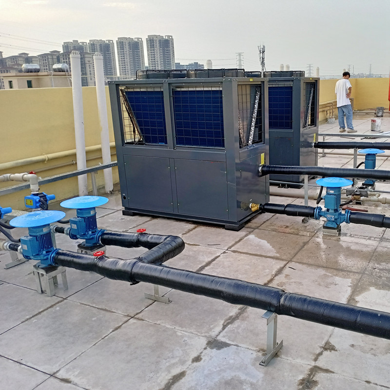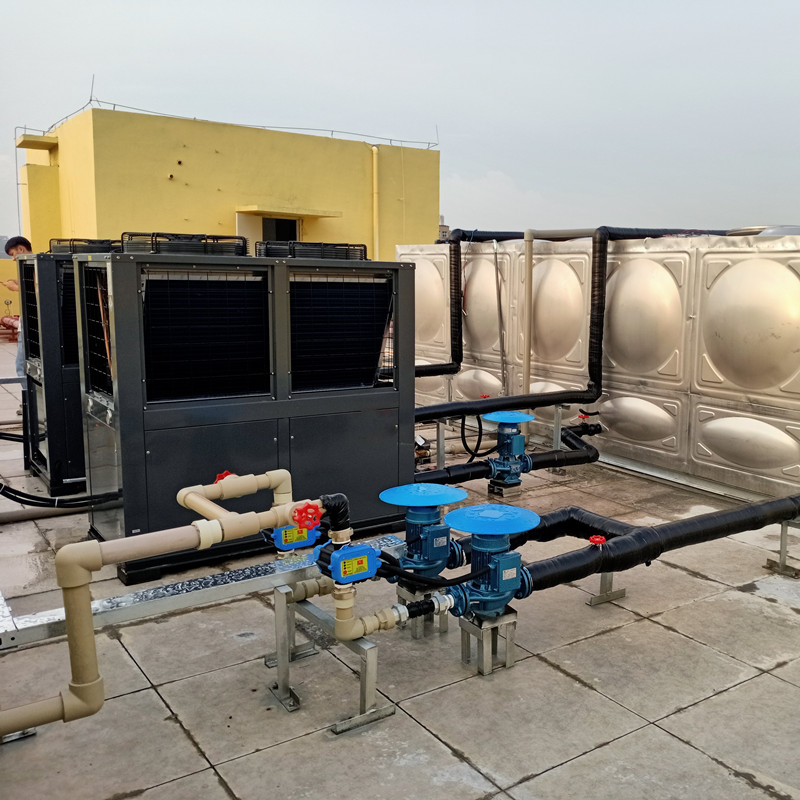設計要求:有1棟宿舍樓,有50個房間,每天用熱水量在30噸左右。要求采用空氣能熱水器工程。
